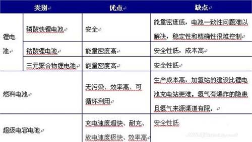 圖表:新能源電池優(yōu)缺點(diǎn)對(duì)比表