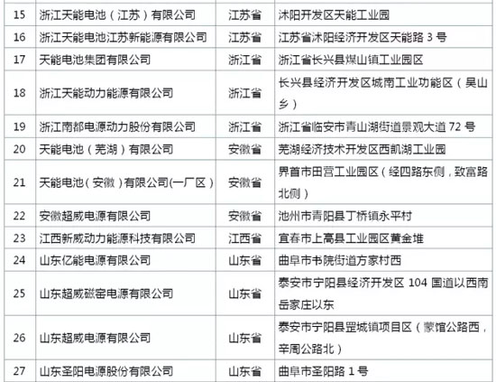 附件:符合《鉛蓄電池行業(yè)規(guī)范條件(2015年本)》企業(yè)名單(第一批)